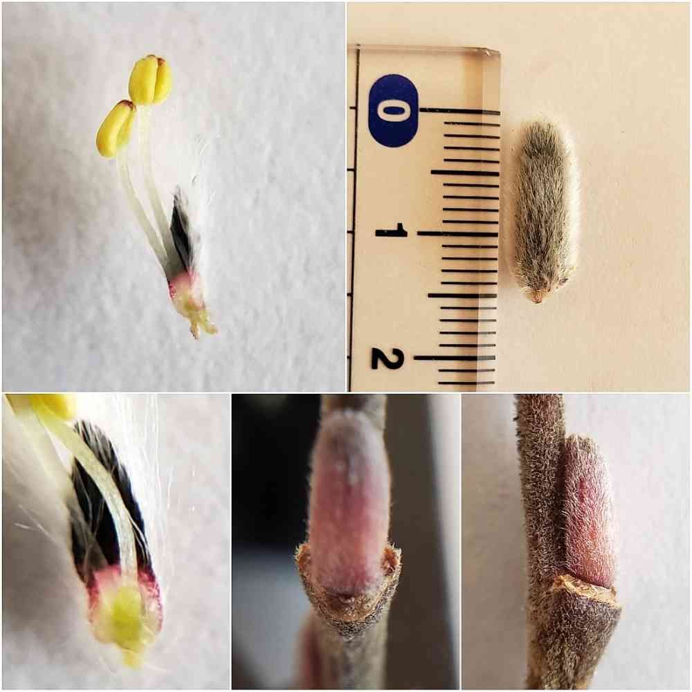 花序が1.5cmと極端に小さくて、(そんな種類あったかな~)と調べていたら、エゾノキヌヤナギを見つけた。図鑑には2~2.5cmと書いていて、最も近い。またエゾノキヌヤナギの冬芽は有毛で新枝にも灰色の毛が密生するとあり、特徴も一致する。