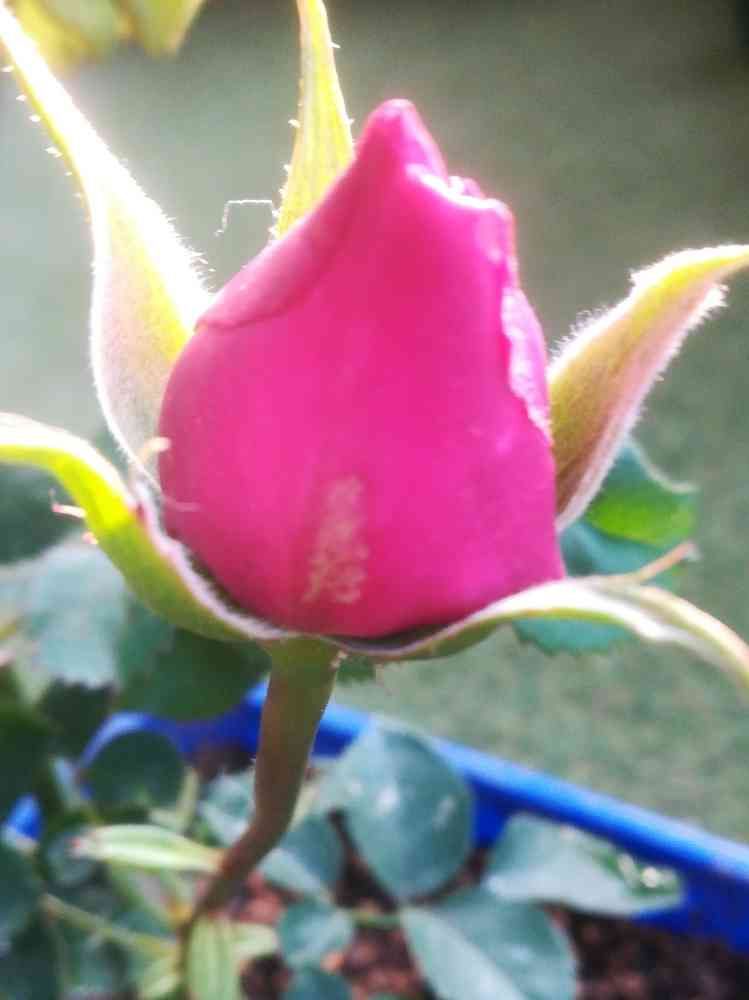 美しい薔薇の蕾、早く咲くと良いですね😃私の薔薇も、同じぐらいの蕾が二つですよ❤️‼️覗いてばかりです🎵太陽