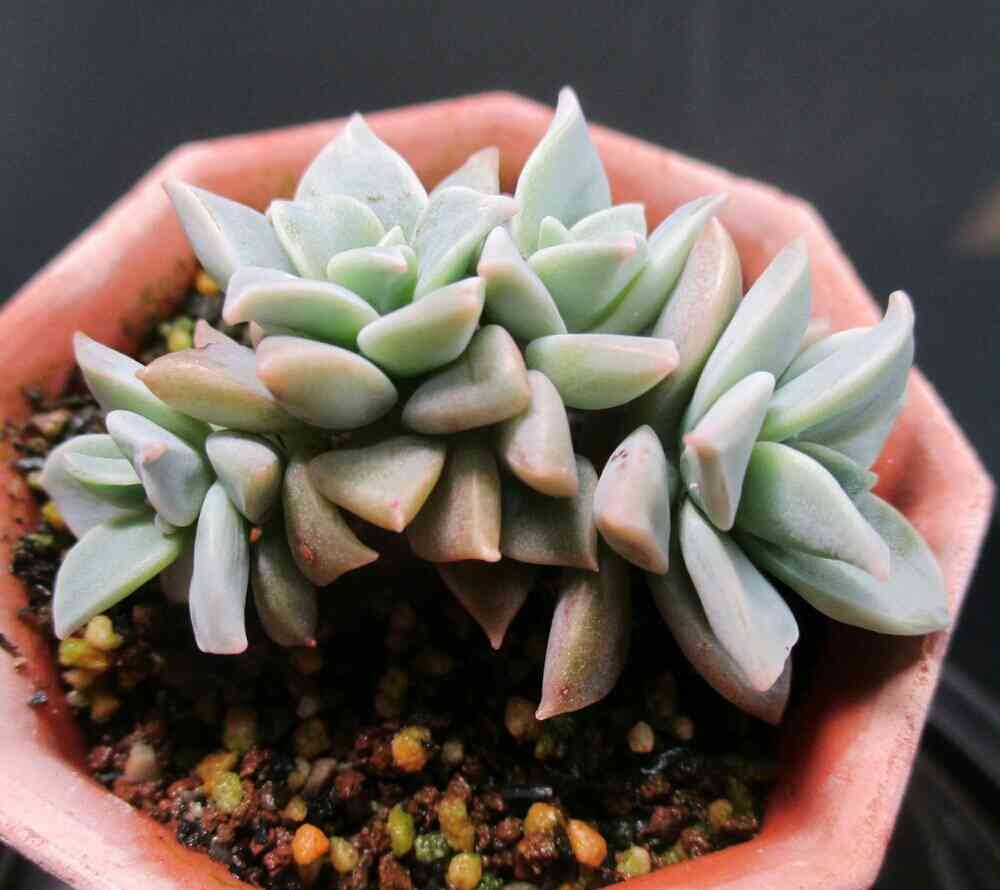 親株の葉挿しから,冬の間に4兄弟が生長してた.