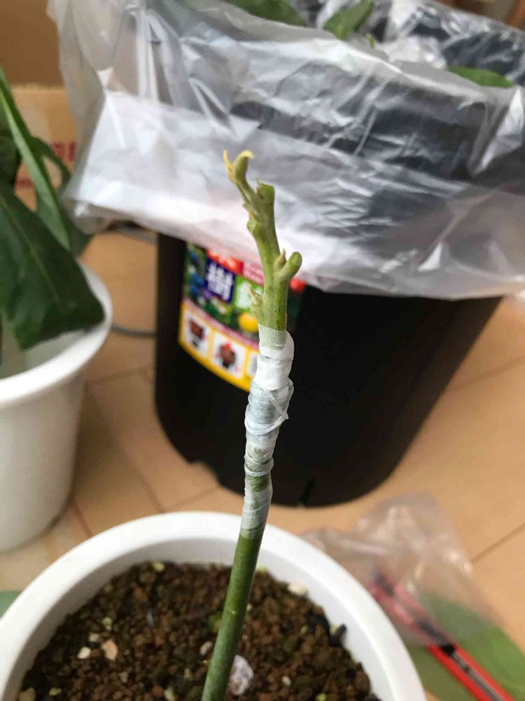ハスの実生に、ベーコンの苗から取った穂木を接ぎ木しました😠