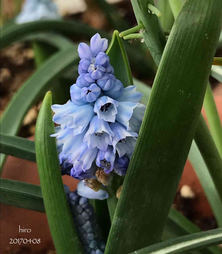 なかなか咲いてなかったムスカリです。水色だったのね💕