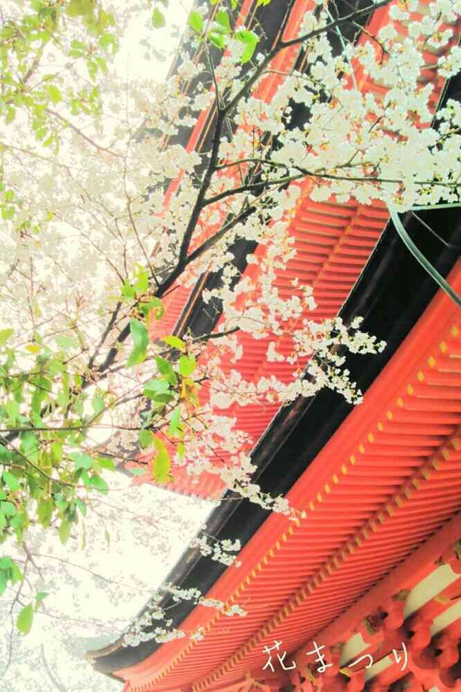 神社の朱色に桜が映えて、素敵ですね✨✨