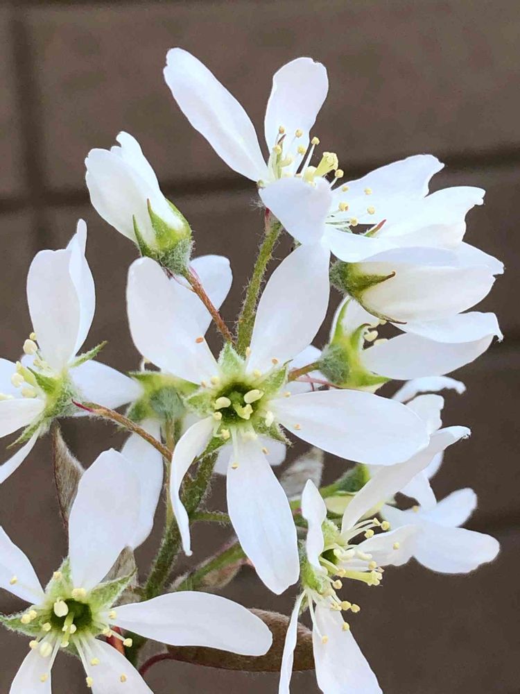 息子宅のシンボルツリー、ジューンベリーが咲き出しました😍