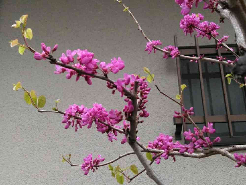 ハナズオウの花が、覗いて、「綺麗でしょ、見て❗」と声をかけられたような、気がしました。