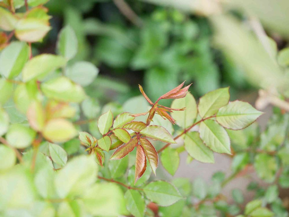 今年初めてお迎えした薔薇 シャリマーの新葉。