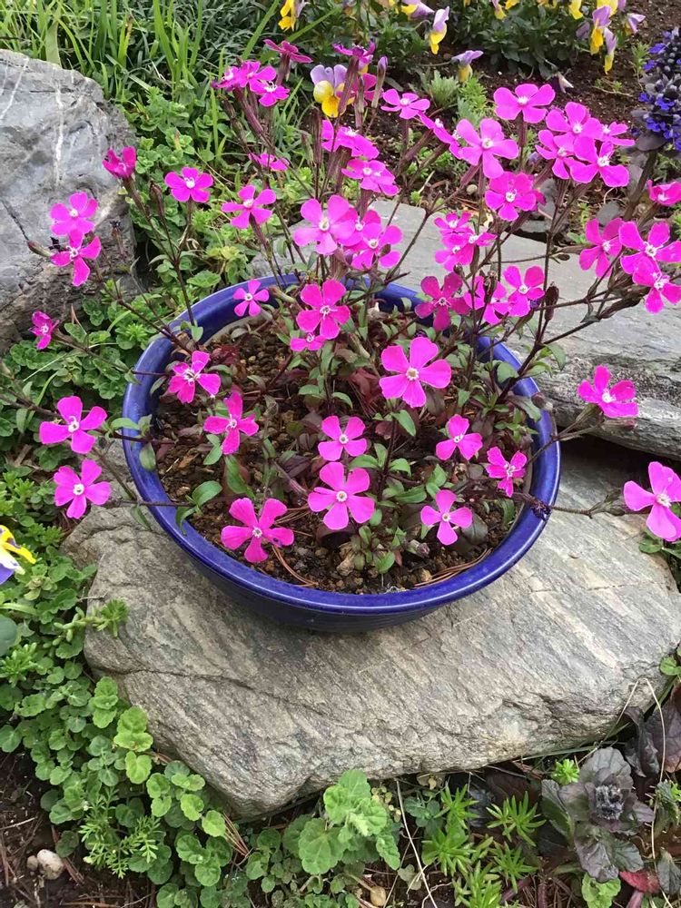 平鉢に 植えて、最初 山野草風 で パラパラ 咲いていましが、今は こんなにいっぱい🌸