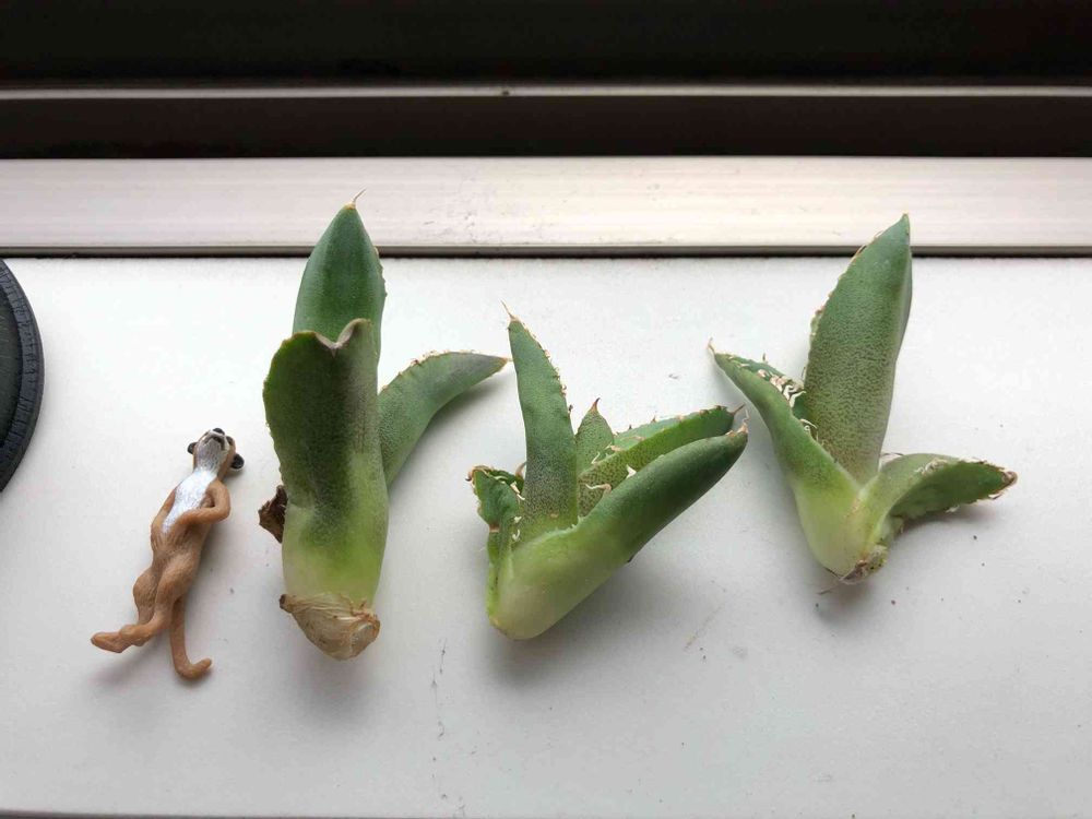 昨日から春の植え替え祭り開催中。でっかくなったエケベリア、アエオニウム、アガベ、サボテンを一気に植え替えてます。アガベ チタノタは小吹まくっているので卒業式となりました。根が出てる子株は独立、根がないものはこれから水刺しして根出しを狙ってみます。大きくなったら、、、稼いでくれよー(笑