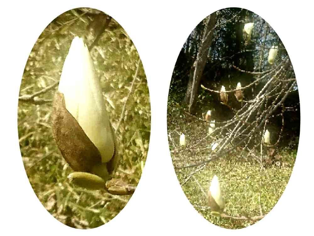 この前、アジサイの葉芽を見て、緑のろうそくだぁと思いましたが、ハクモクレンのつぼみがたくさん付いた樹木がキャンドルスタンドに見えた時、うれしくなりましたヘ(^o^)/