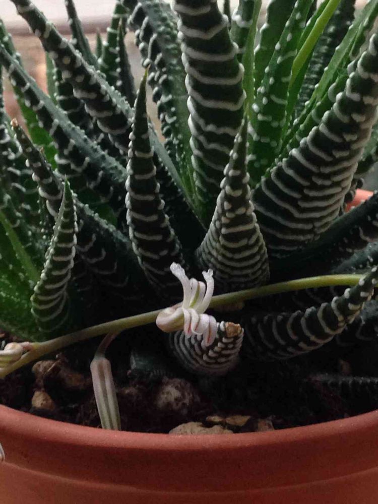 小さな細い花びらが6枚、3枚ずつあっちとこっちに分かれて開いています。よく見ると先っぽがうっすらピンクなんですよ💕私だってお花だもーん❣️って感じです(笑)