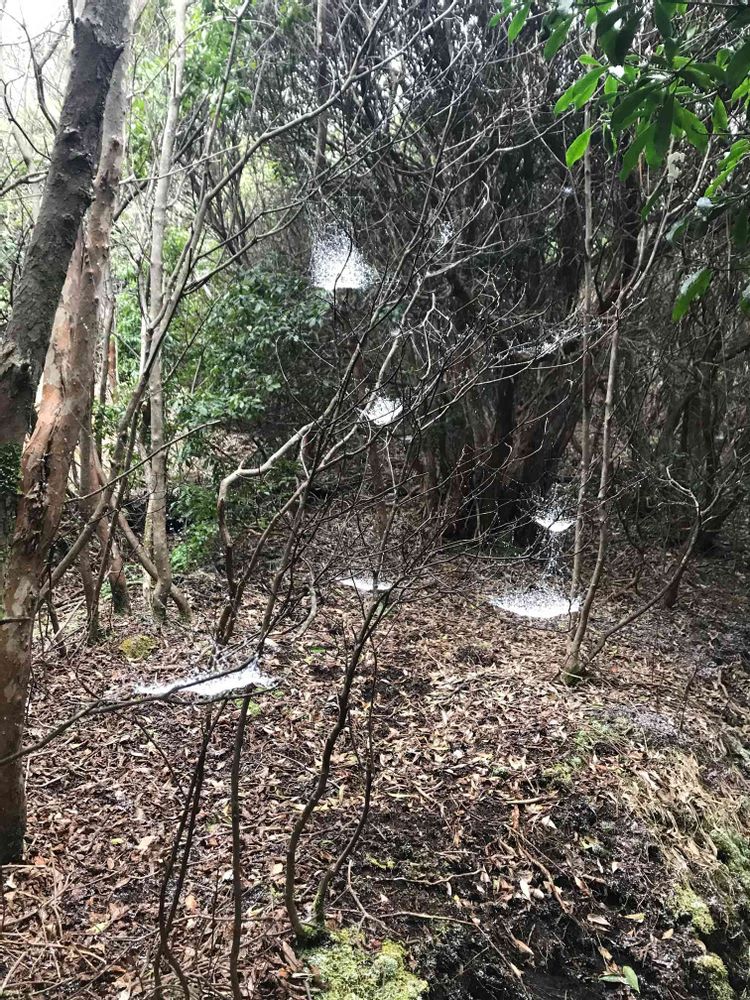 蜘蛛の巣に雪が積もって、白いお花のようで綺麗でした。😊