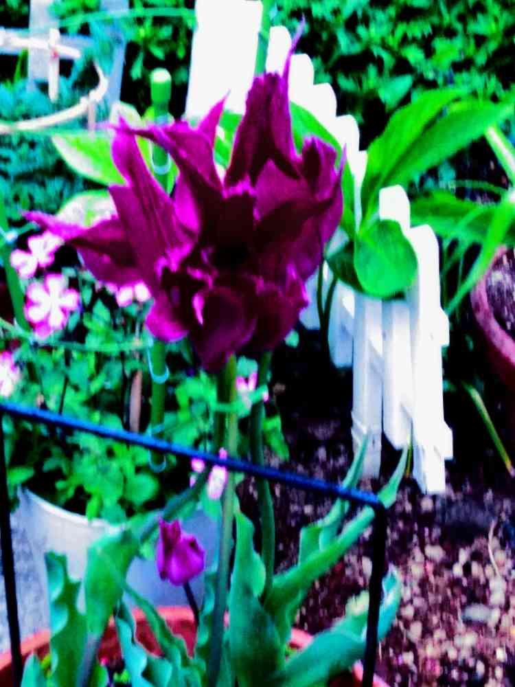 ご近所の👵の花壇に、面白いチューリップ🌷が、咲いていました。