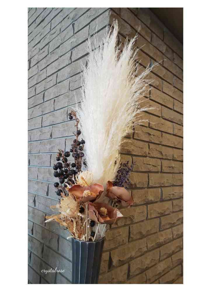今回はドライフラワーのアレジメント。パンパスをメインにし