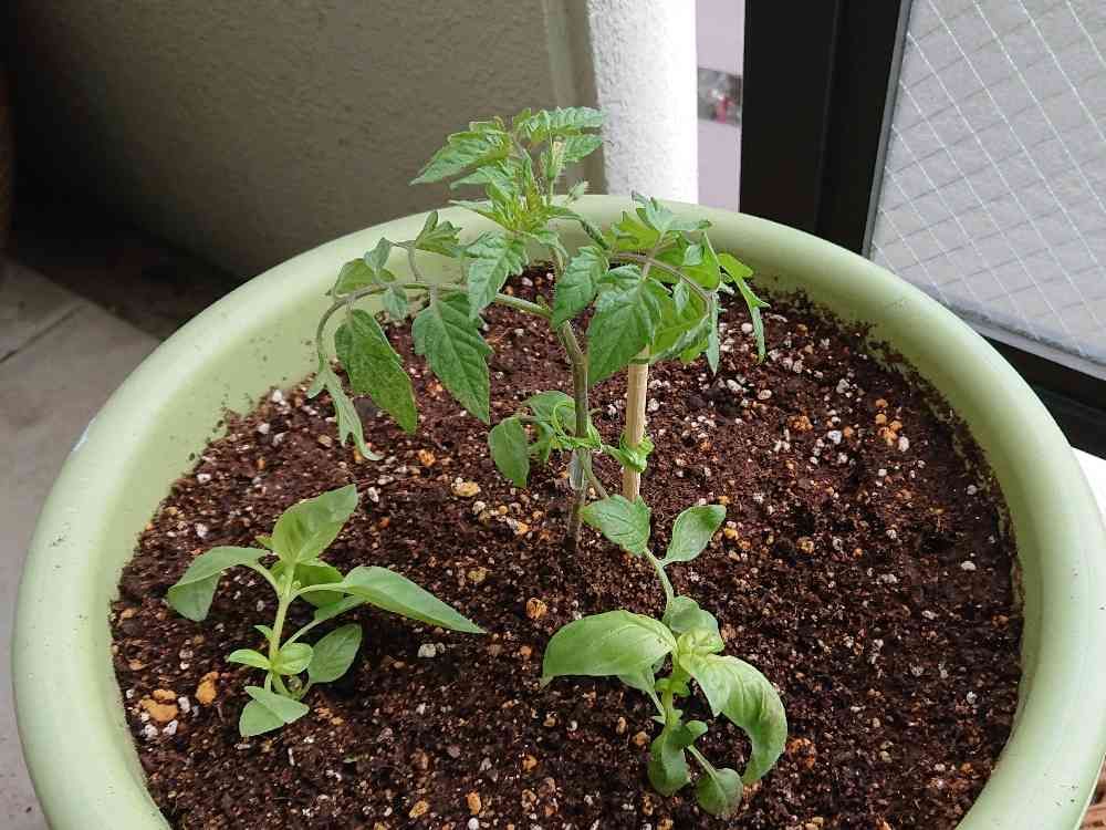 虫よけと管理のため、一緒にバジルも植え付けしました。
