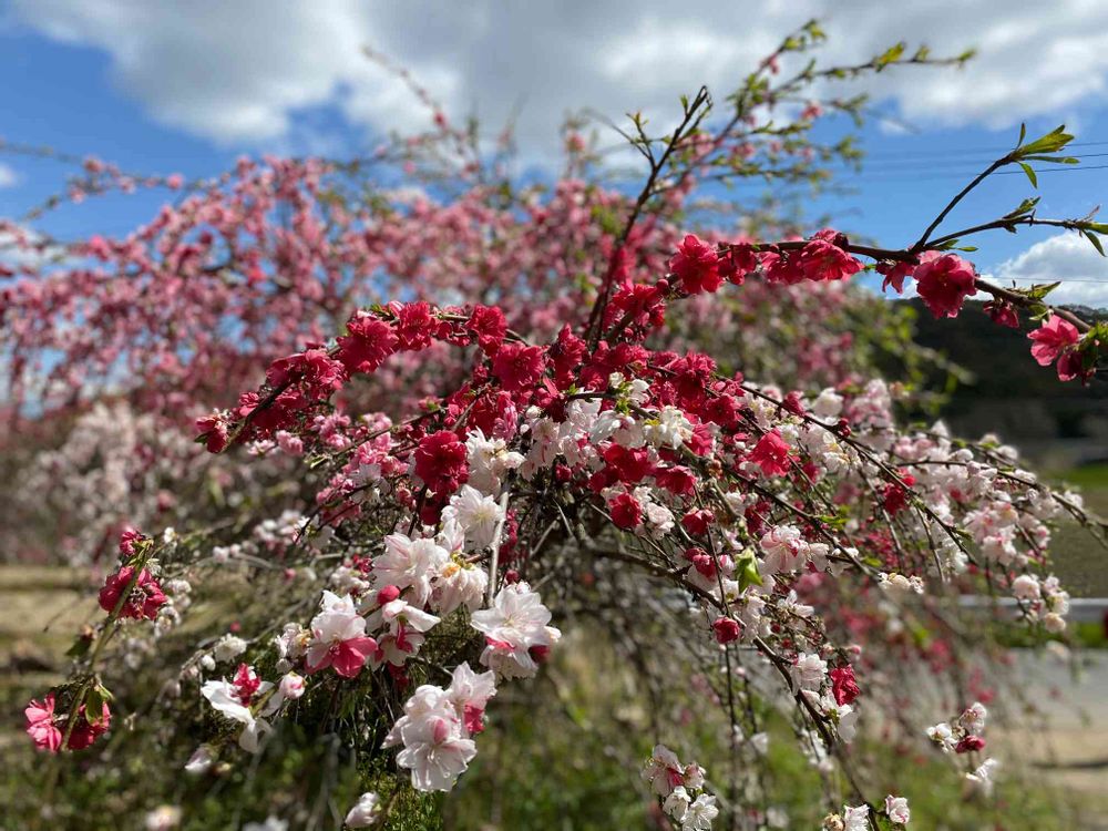 1本の木から白・ピンク・赤・八重咲きの花(^^)鮮やかで華やかで艶やかでした。これって桃の花?なんでしょうか?