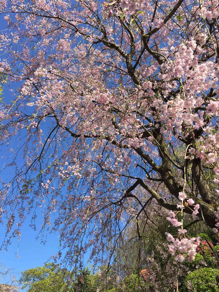 耳納連山の中腹にある 内山緑地の枝垂れ桜🌸🌸🌸青い空に気持ち良さそうです。ここで、オカリナを演奏しました🎶