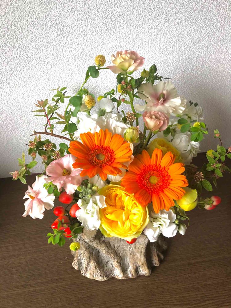 イースター🥚切り株をイメージした器にアレンジしてみました🌷🌼🍀☘️🌿😊