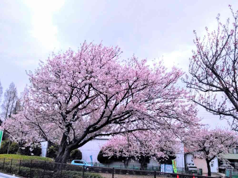 散策の通り道、体育館の桜🌸です。今はコロナで閉鎖中なので、外から撮りました。