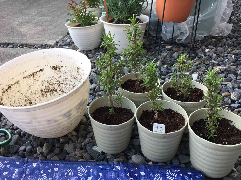 ローズマリー、親株の方は花咲いたことがないのでおかしいなと思って鉢から出したら根っこギッシリ詰まってました。