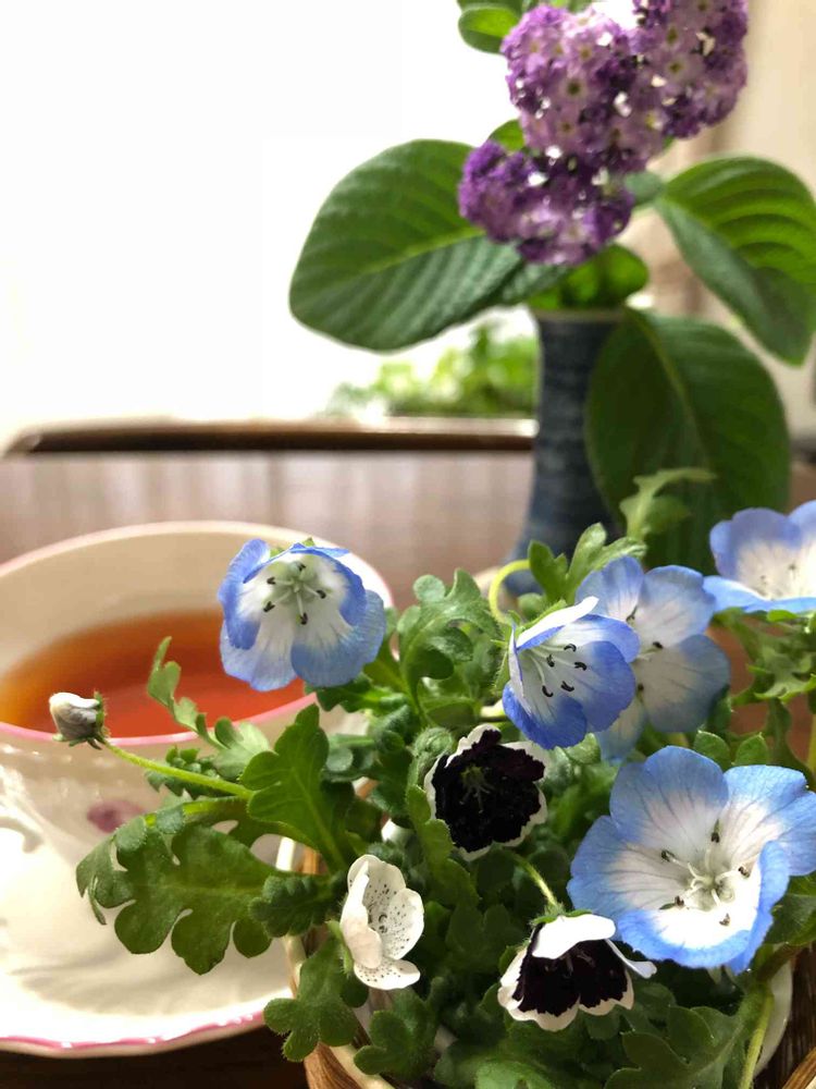 ネモフィラ3種がティータイム☕のお供に心が和みますね🎵