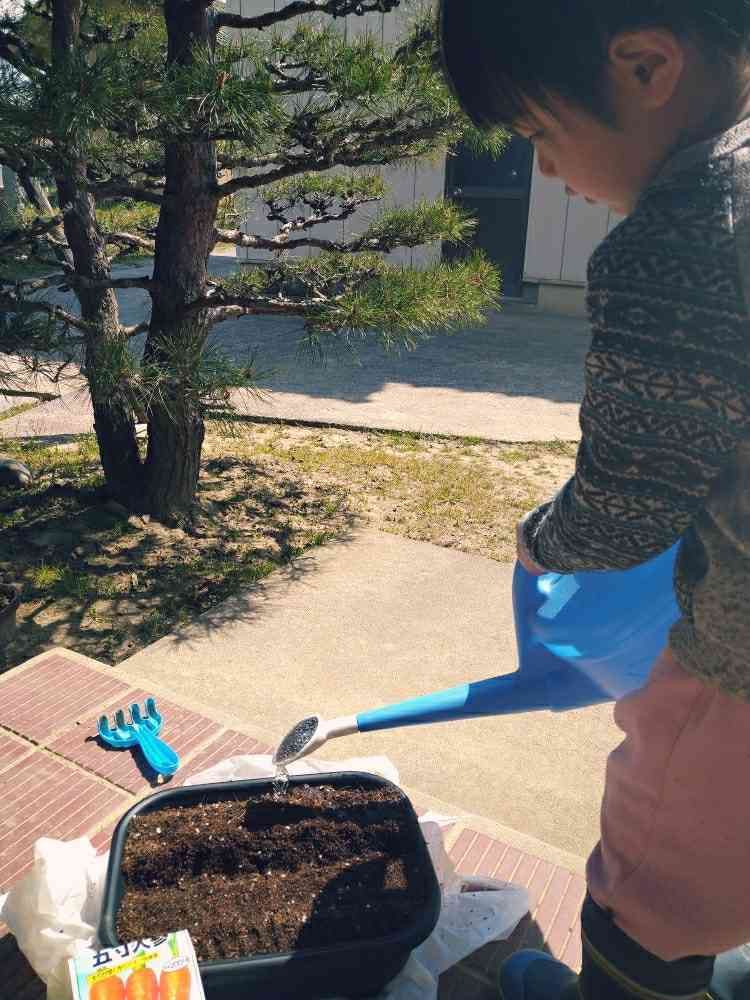 昨日、二人で人参を種蒔き🌱