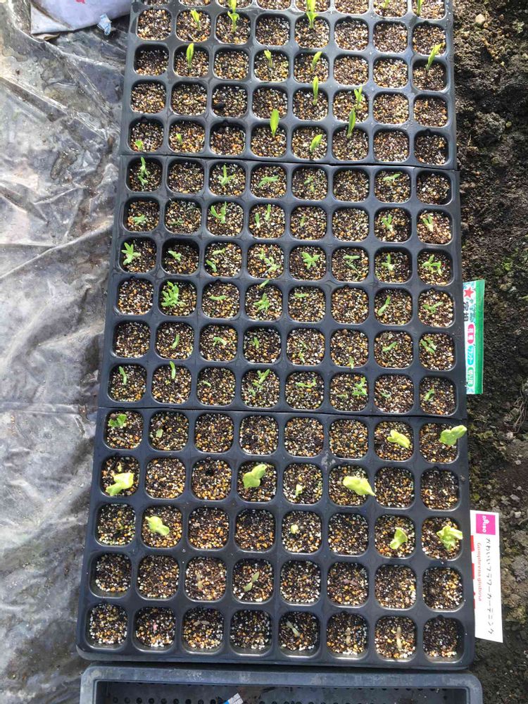 3月15日に花と野菜の種を播いて、今こんな感じで〜す🌱今は育苗ハウスの中にお邪魔してま〜す🌱🌱頑張って大きくなってね🤗❣️☘️☘️❣️