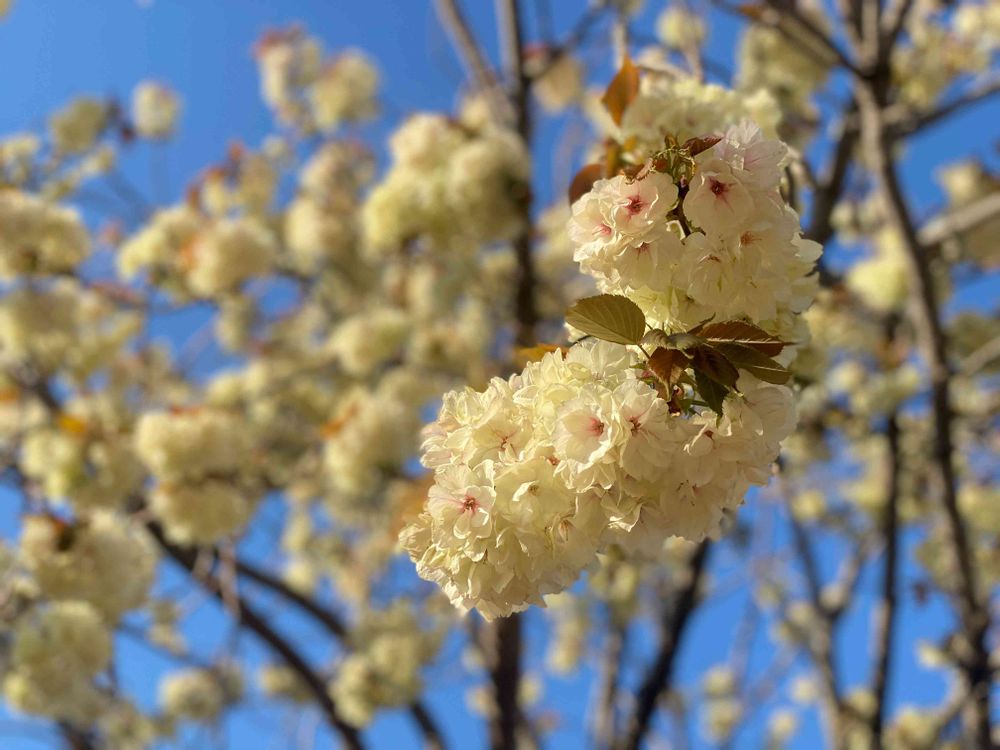 散歩中に見つけたイエローベージュの桜っぽいお花。