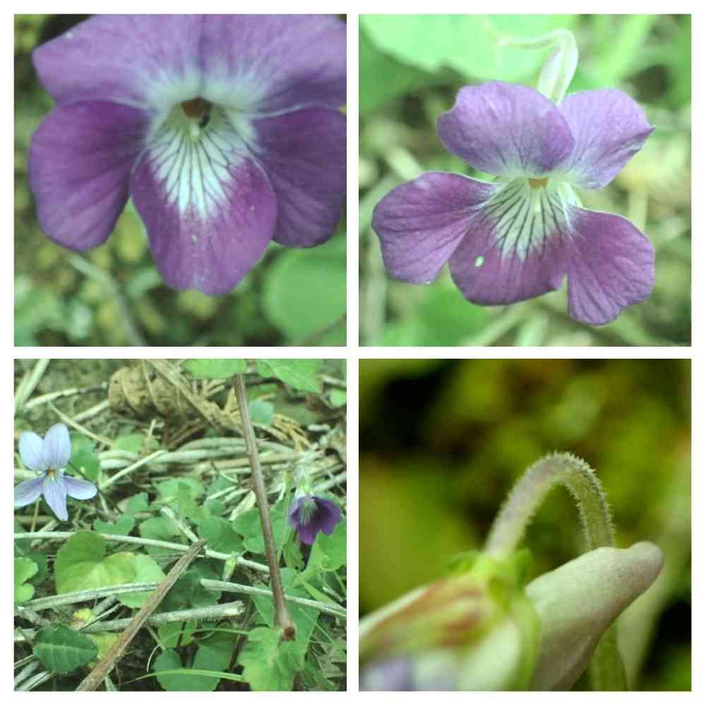芳香が強い、葉に毛がある、左上 丸い花弁が重なり合う、右上 唇弁が丸い(左のは丸く無いけど)左下 タチツボスミレとニオイタチツボスミレ(開花途中)右下 花茎に細毛があり白く見える、🌹の喉部の白が大きくはっきりと見える。 この場所では数百個のタチツボ……があったけどニオイタチツボスミレは7株だけ。
