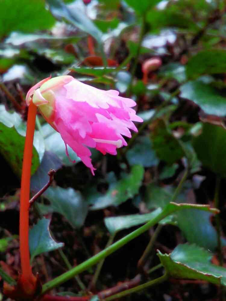花びらの先端がイワカガミほど細かく分かれておらず、雌しべが長く延びているので、イワウチワの花開く前のものだと思いましたが...
