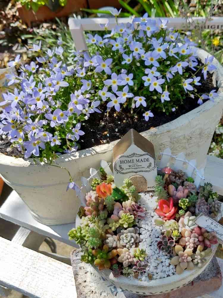 ヒナソウも、たくさん咲いてくれたから、可愛い箱庭と