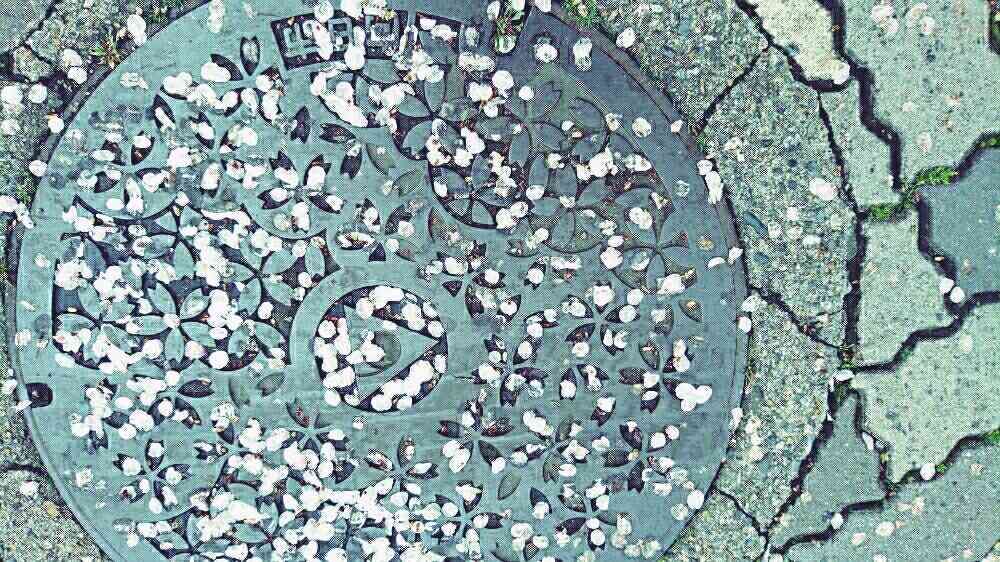桜の花のマンホールに桜の花びらがいっぱい🎵