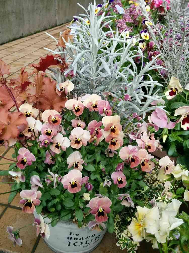 後ろのヒューケラ?茶色の葉っぱとビオラの色がシンクロしててステキ〜⤴️⤴️💕