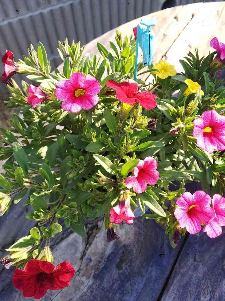 1株から赤、ピンク、黄色の花が🤗