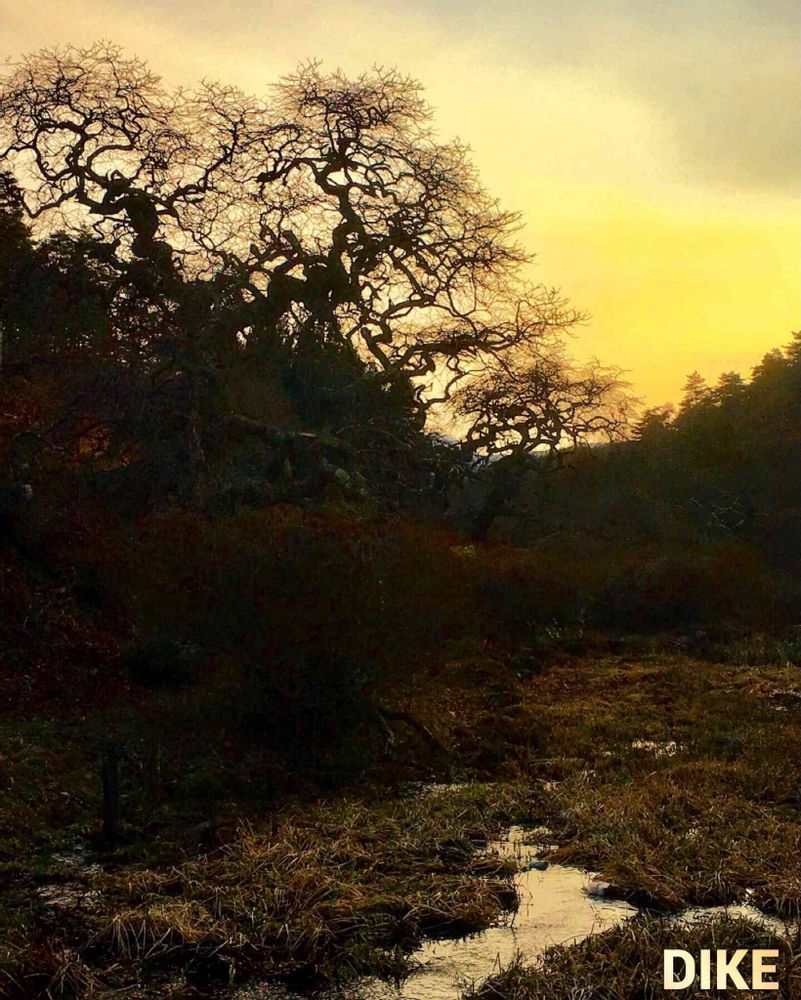 しだれ栗の夕暮れ(2)しだれ栗とせせらぎ
