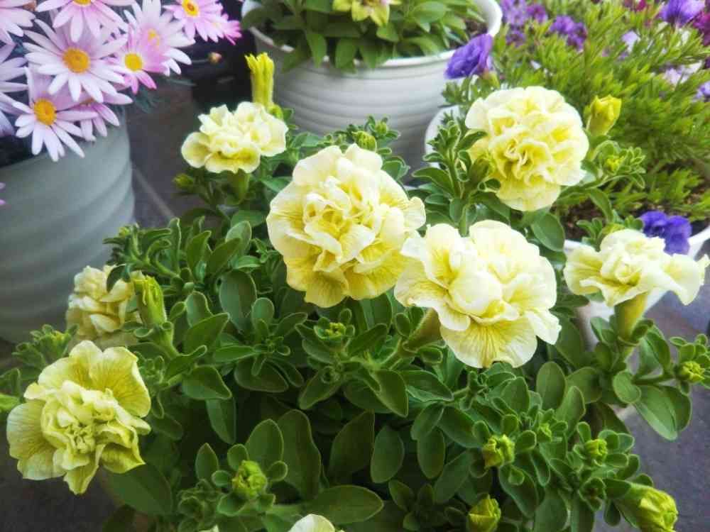 ペチュニア・ギュギュ・ダブルイエローの冬越しさし芽株、咲きだしました✨