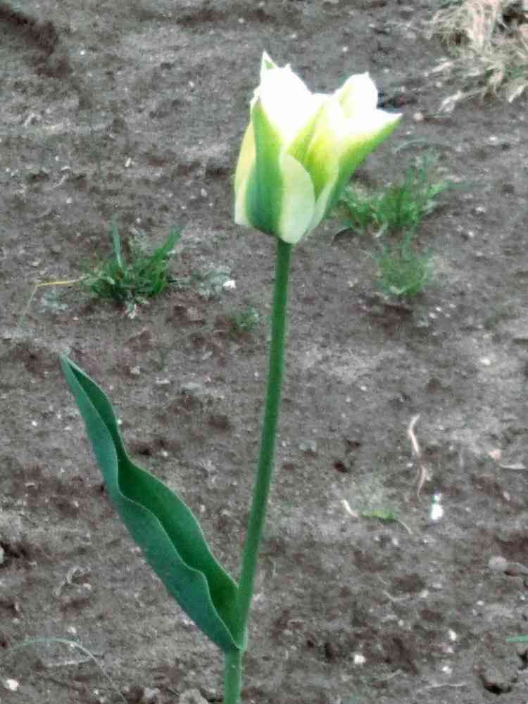 散策の通り道の畑に、たった1輪のチューリップ🌷の花が、咲いていました。