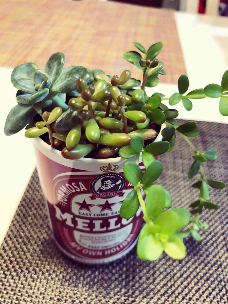 セリアの缶と去年冬越しの多肉寄せ植え初なんですよ🤣盛りすぎてなにがなんだか。でもおかげで
