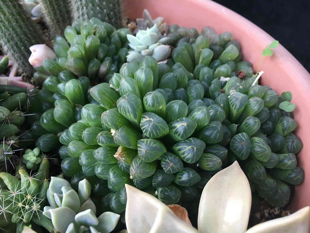 実家のハオルチアさん達。さっきのハオルチアは、この子から株分けしてもらったんだけど。この子達ずっと外にいるらしいけど、緑でぷっくり🤩