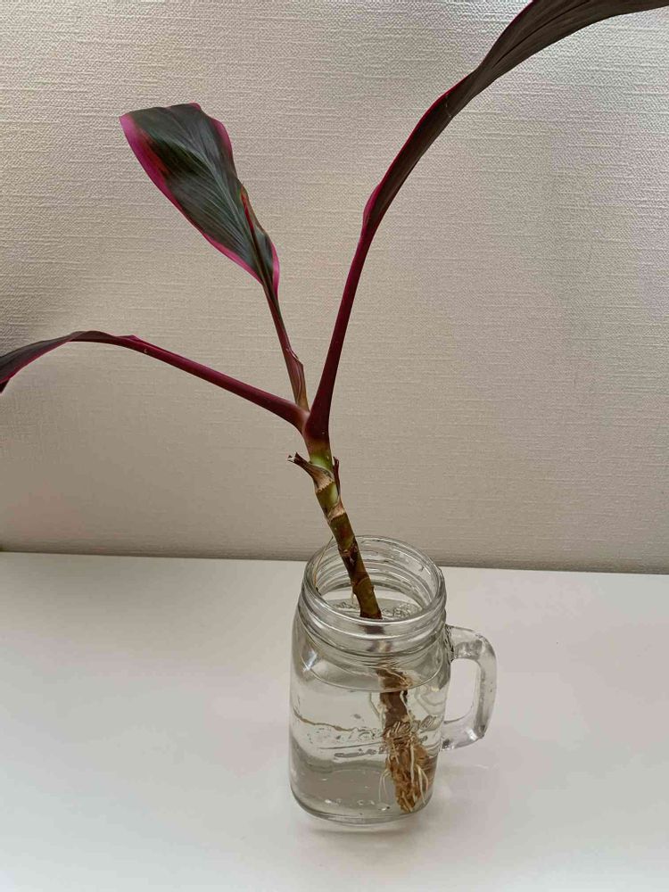 花束の中にあった葉っぱさん。根が伸びてきて、捨てるのがかわいそうに。。名前と植え替え方のオススメとかあれば教えてください。