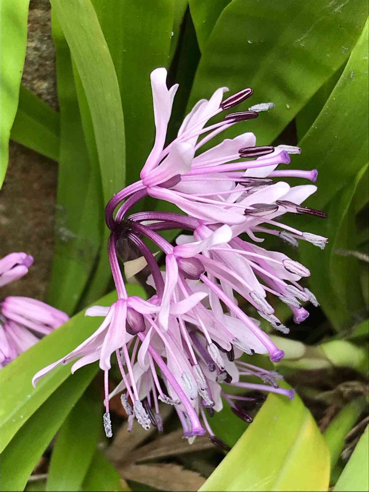 1本の茎に5〜6コの花房が付き、花びらは、放射状に咲いてます。