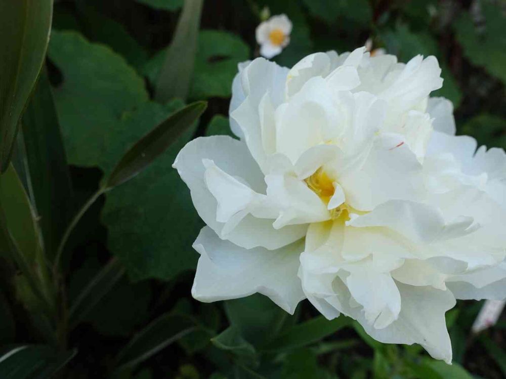 写真ではあまりよくわかりませんが、花びらがとても薄くて光が透けて見えるようです。シャクヤクにも似ていますね。