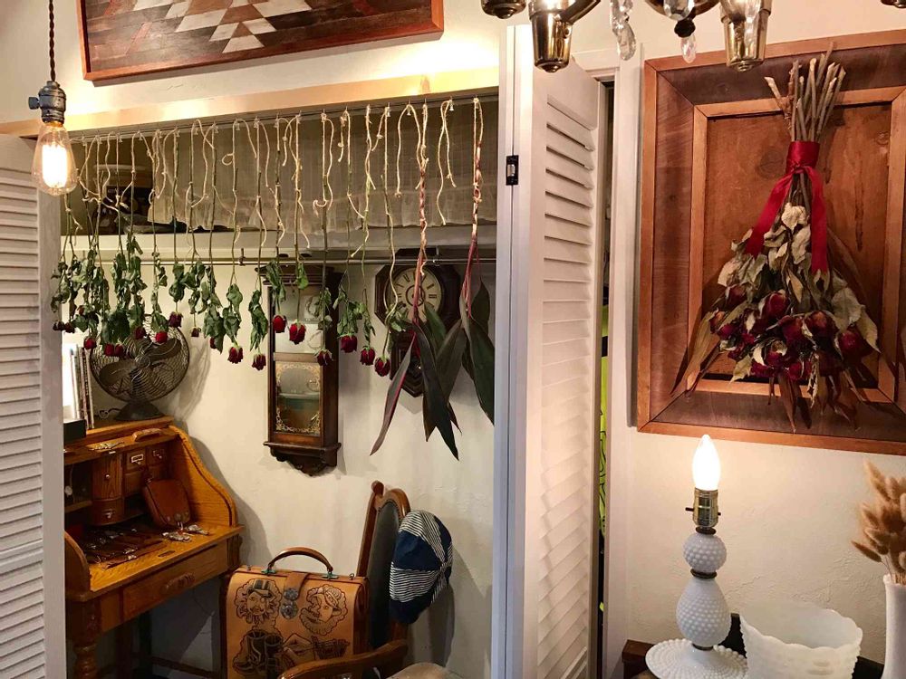 ドライフラワー作り中と