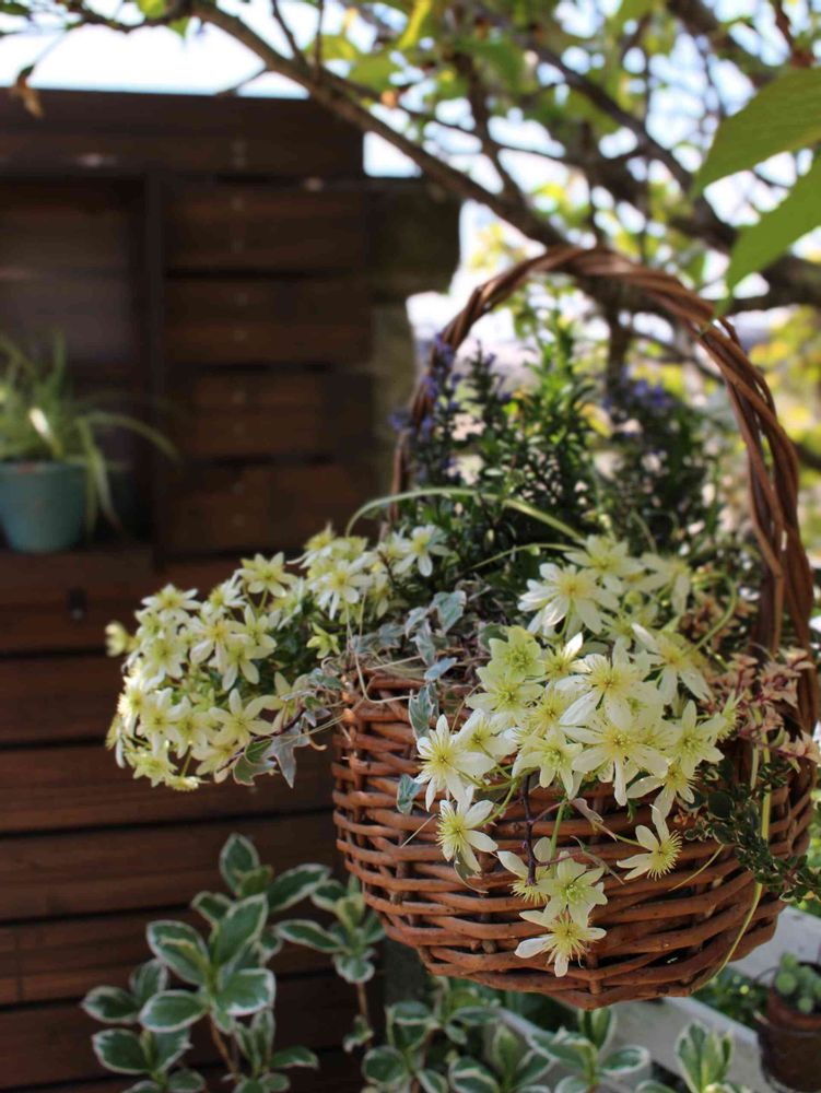 クレマチスピクシーのハンギングバスケット。