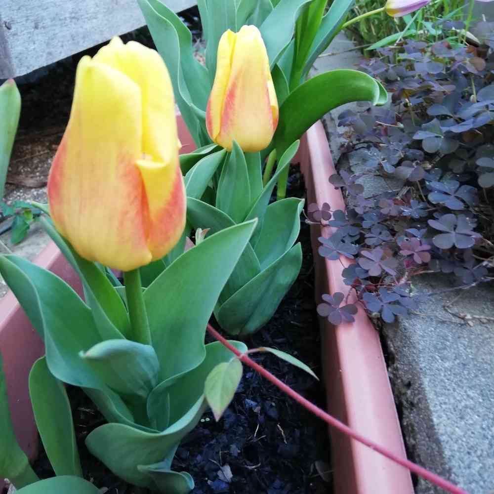 リリーさん、チューリップ開花おめでとうございます、黄色とオレンジぼかしになって、元気が貰えそう、今日も頑張ります