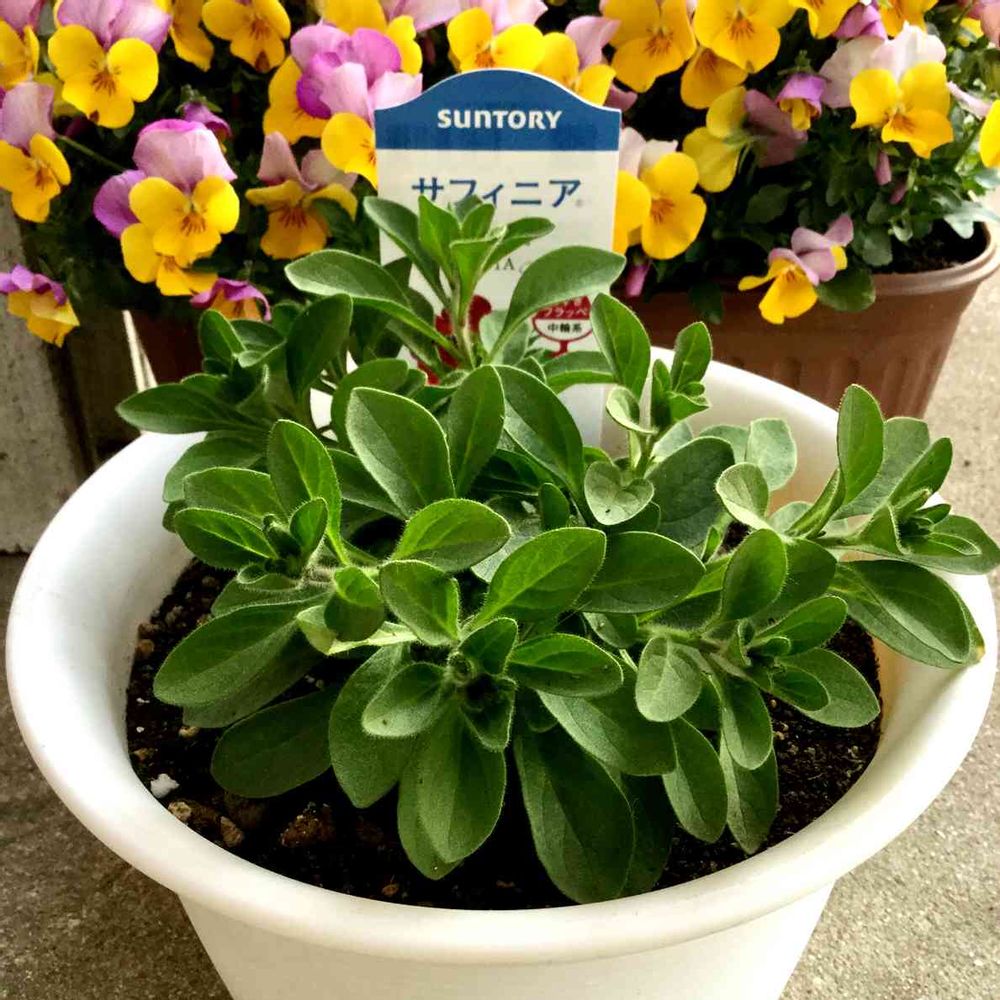 花壇から寄せ植えてまだまだ頑張ってくれているビオラ🌱イエローピンクジャンプアップ🌱とお迎えしている、サフィニアアート🌱あずきフラッペ🌱素敵になぁれ✨🐒