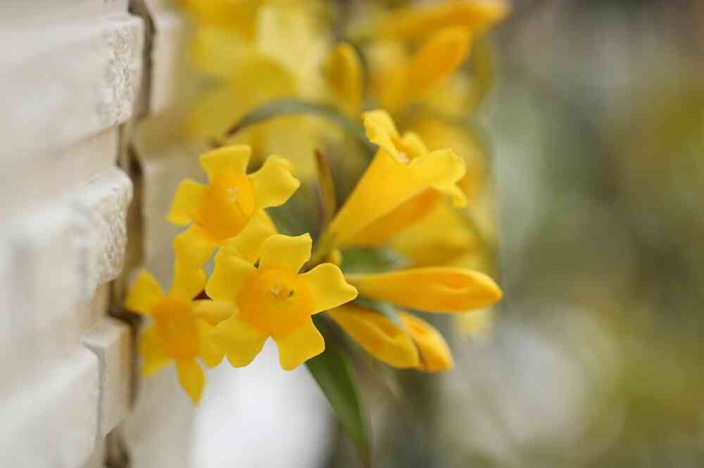 黄色いジャスミンさん、ちょこんと顔を出していてかわいいですぅ🎵