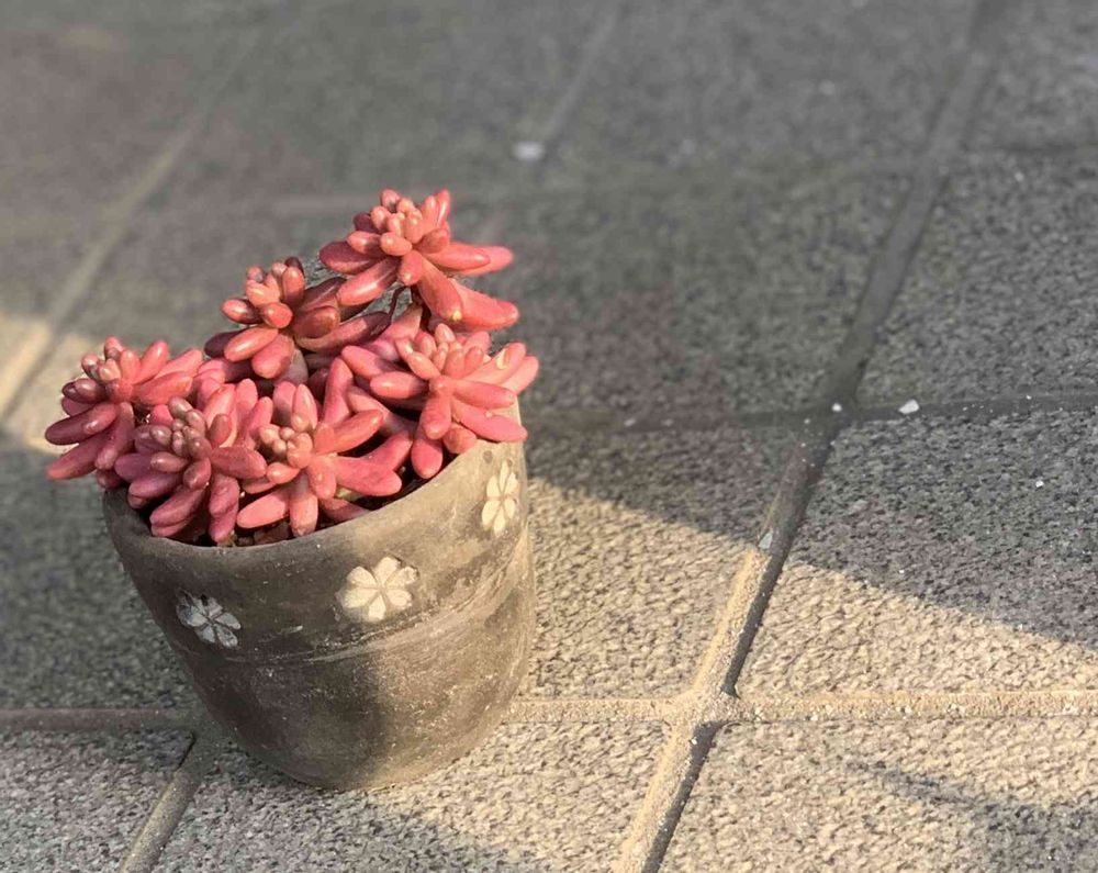 おはよう😎風除室でも紅葉してたけど外にしたら光沢感ゼロのおpink🤭赤もいいけど綺麗だよね(//∇//)