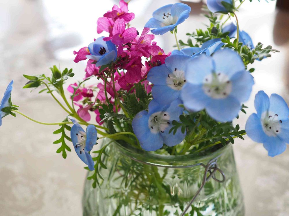 可愛いね〜💕ネモフィラの薄いブルーがなんとも綺麗な色合い💖