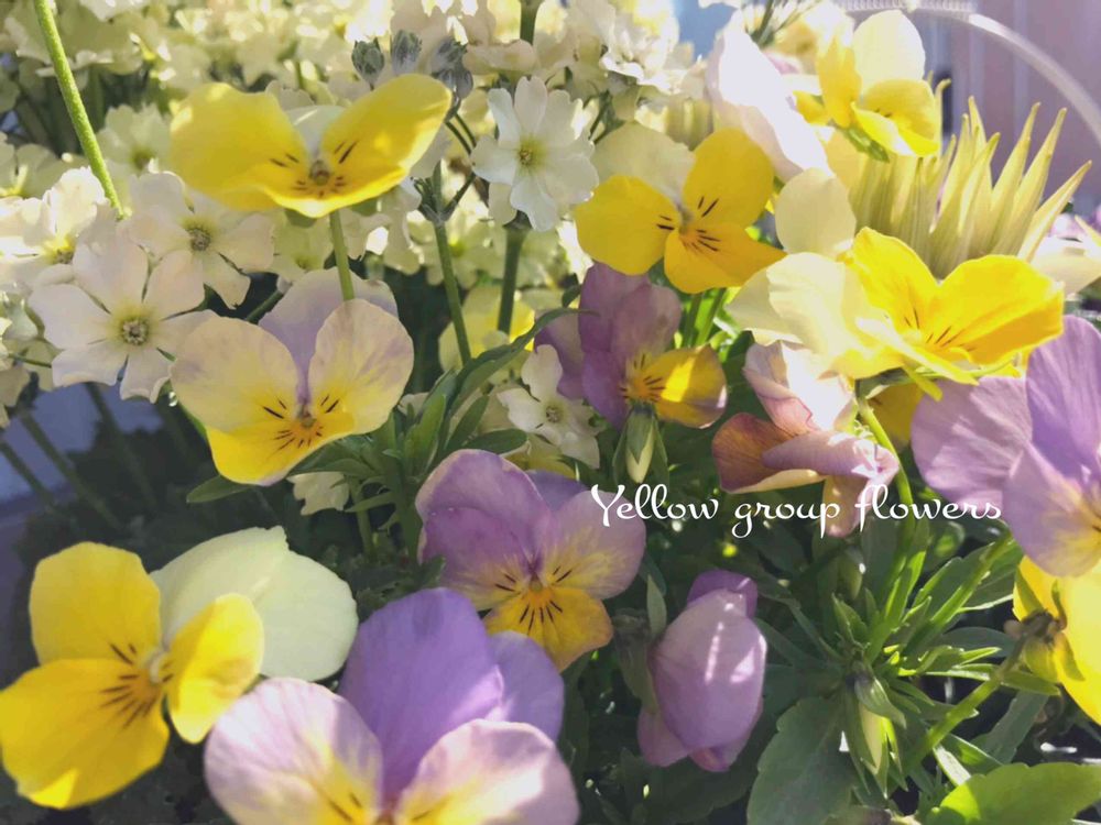 元気をもらえる黄色系で寄せ植えしたお花達🌼(ビオラ・ストック・ウインティー・ガザニア・クロッカス)