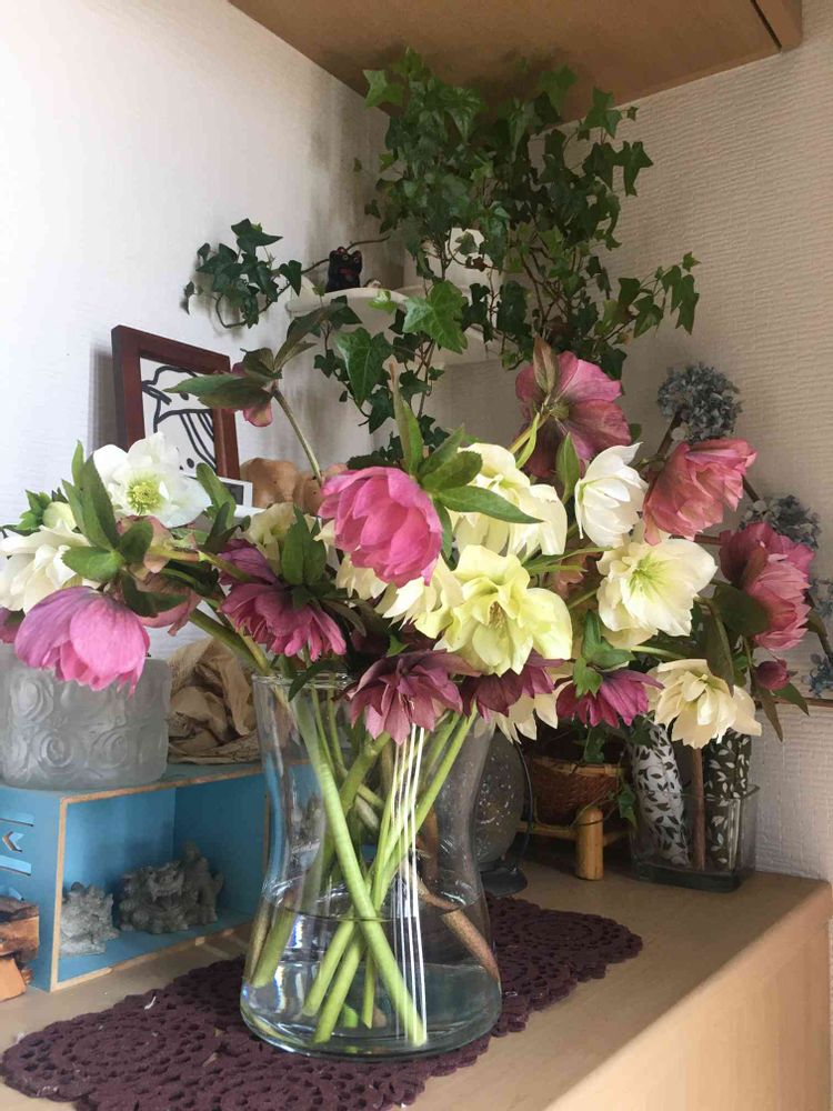 私も よりさんの真似して クリスマスローズカットして 玄関に生けました🙋