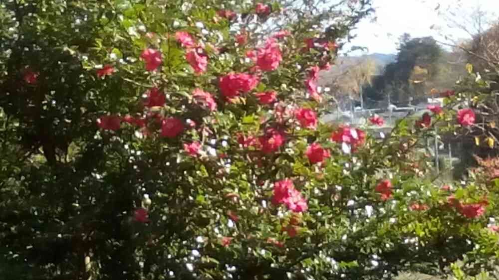 山茶花結構でかい木、陽当りいいんだね(^^)キラキラしてた